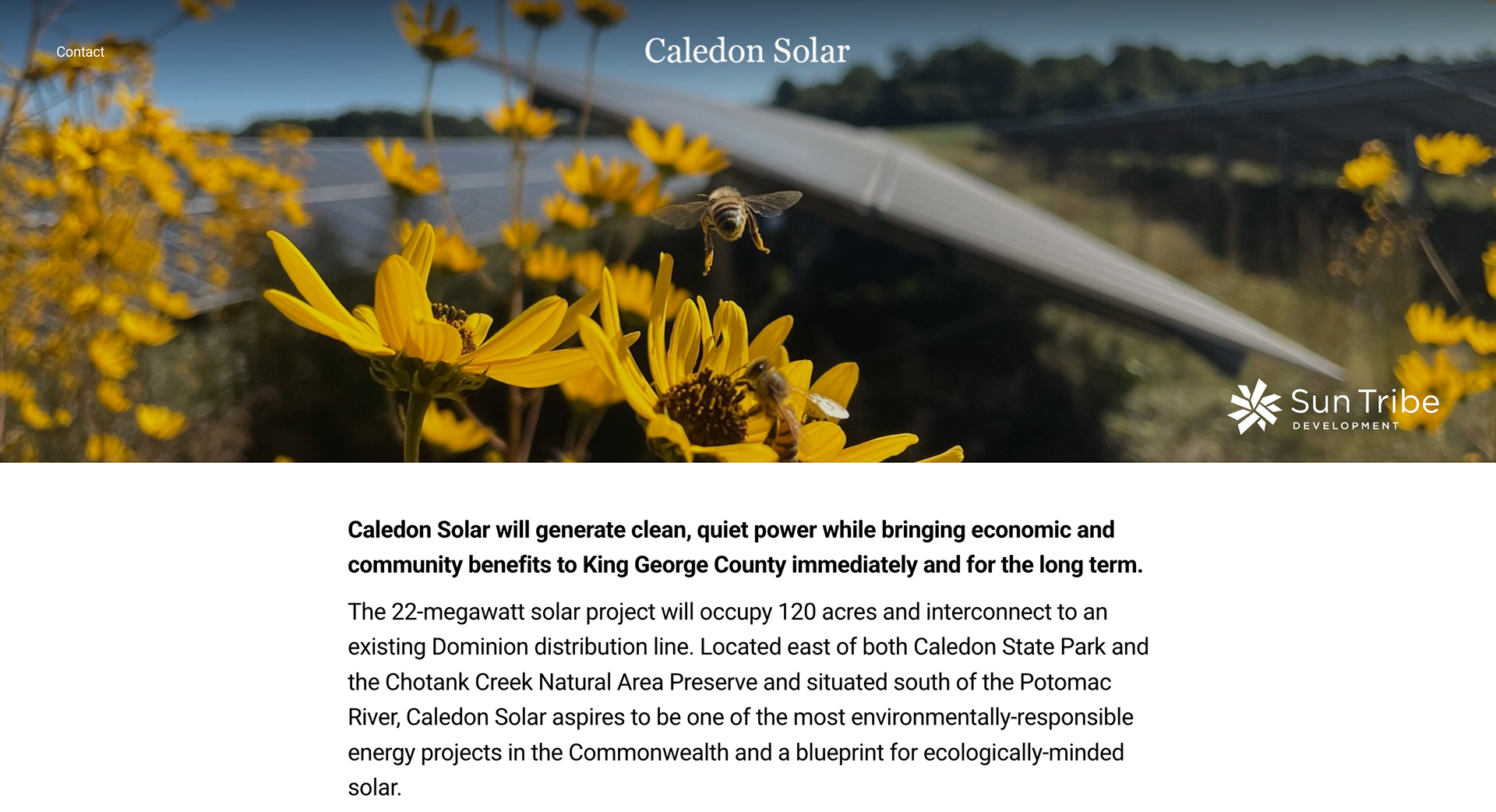 I worked with Inflection Point Agency to launch a dedicated website for Sun Tribe's Caledon Solar project in Virginia. I wrote the website copy based on UX principles and worked with the design team to lay out all the information logically based on UI principles.